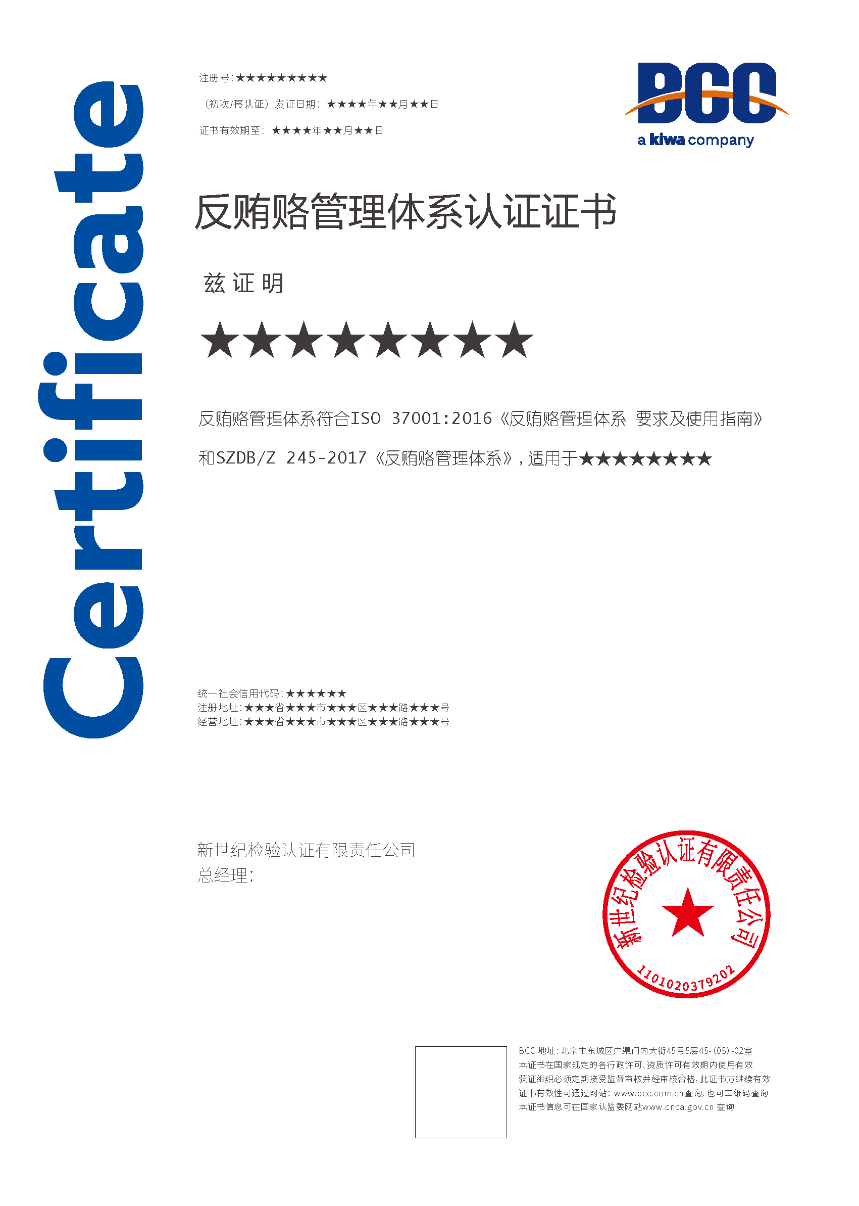 本頁(yè)涉及的認(rèn)證服務(wù)中均有對(duì)應(yīng)的《認(rèn)證實(shí)施規(guī)則》,BCC擁有其最終解釋權(quán)。任何組織及個(gè)人未經(jīng)BCC許可,不得以任何形式全部或部分使用(法律要求除外)認(rèn)證相關(guān)信息。如需獲取相關(guān)實(shí)施規(guī)則請(qǐng)用以下方式聯(lián)系獲取:電話:010-58579316 郵箱:fwjs@kiwa.cn