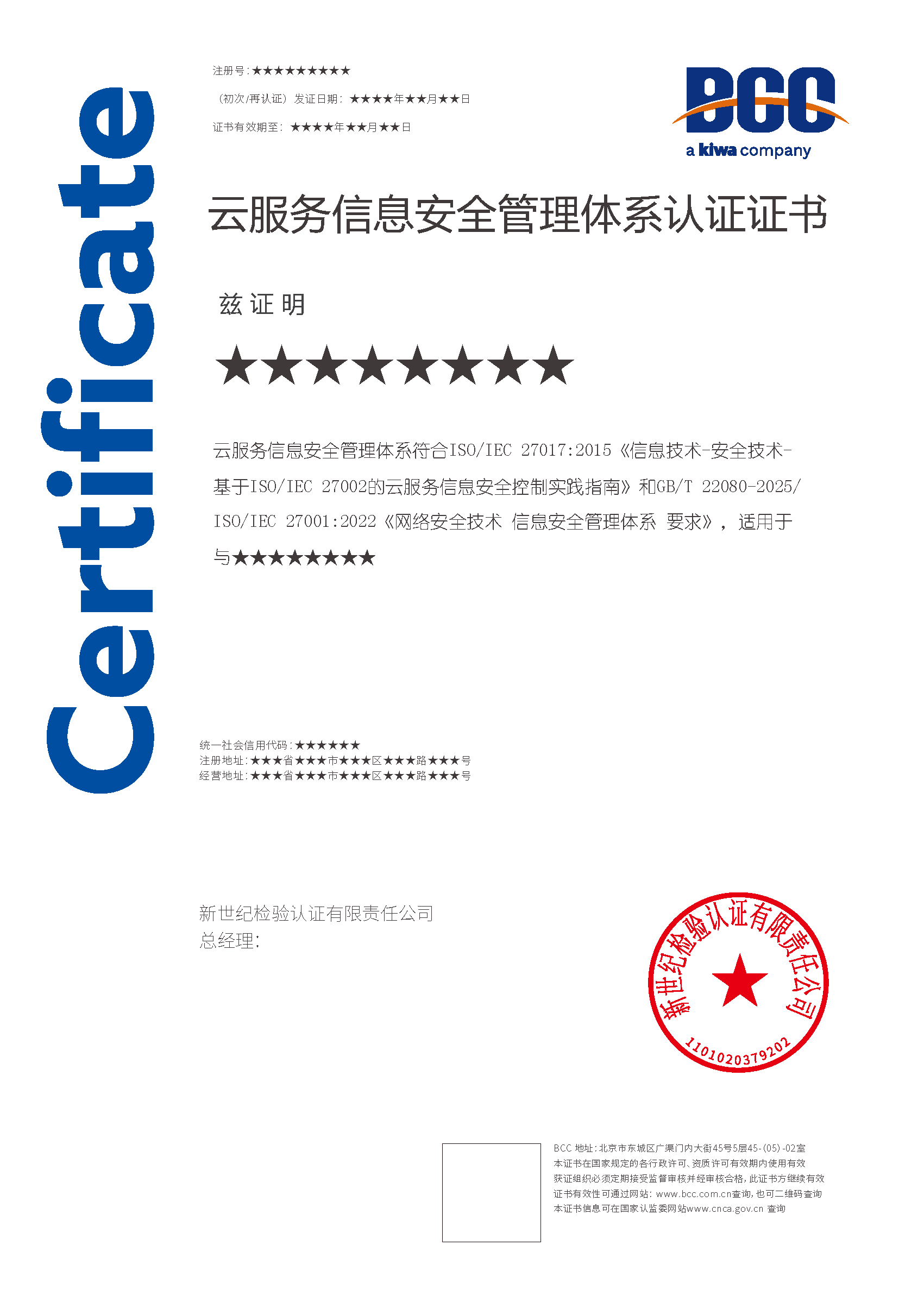 本頁涉及的認證服務中均有對應的《認證實施規(guī)則》,BCC擁有其最終解釋權。任何組織及個人未經(jīng)BCC許可,不得以任何形式全部或部分使用(法律要求除外)認證相關信息。如需獲取相關實施規(guī)則請用以下方式聯(lián)系獲?。弘娫挘?10-58579316 郵箱:fwjs@kiwa.cn