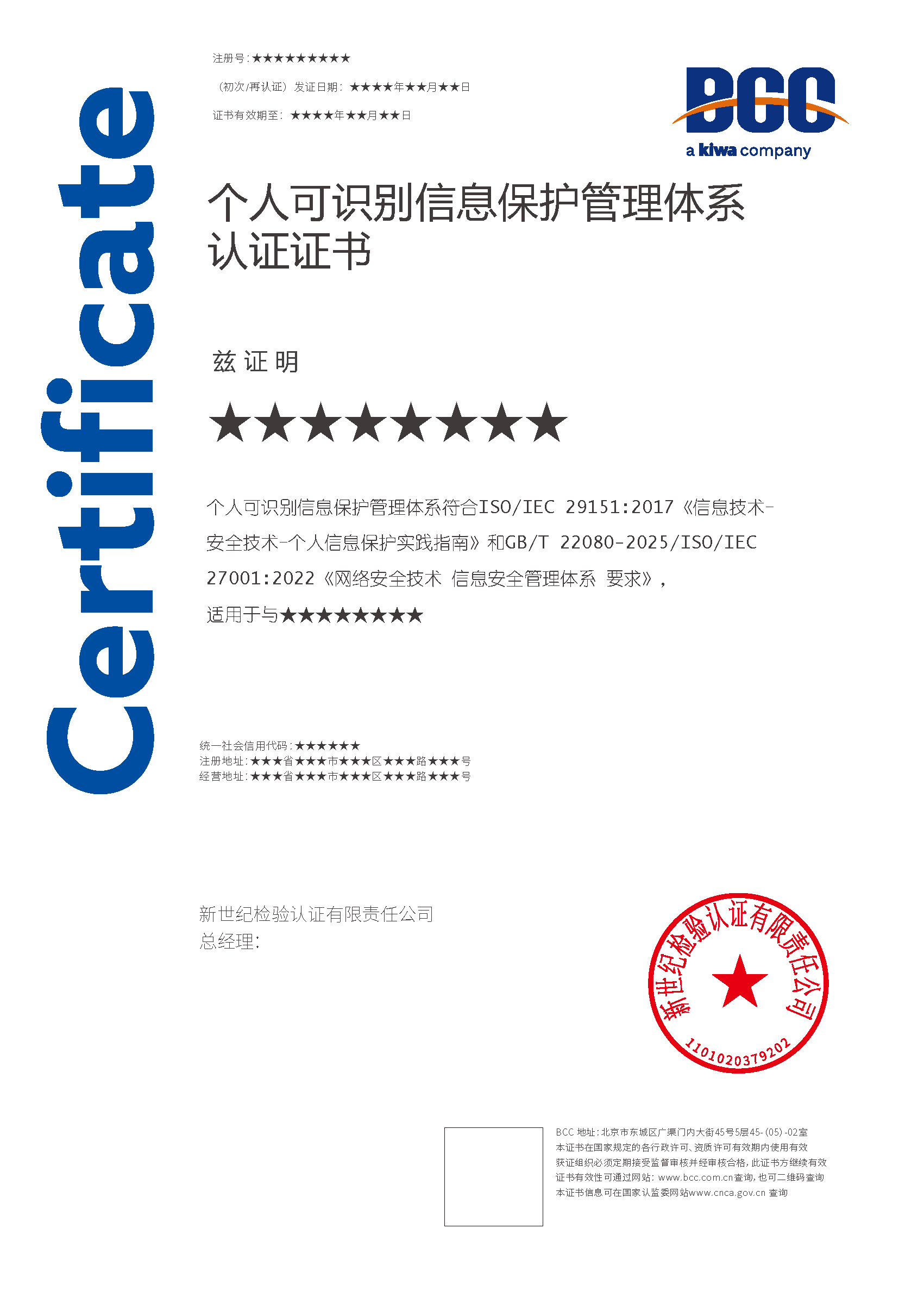 本頁涉及的認(rèn)證服務(wù)中均有對應(yīng)的《認(rèn)證實(shí)施規(guī)則》,BCC擁有其最終解釋權(quán)。任何組織及個(gè)人未經(jīng)BCC許可,不得以任何形式全部或部分使用(法律要求除外)認(rèn)證相關(guān)信息。如需獲取相關(guān)實(shí)施規(guī)則請用以下方式聯(lián)系獲?。弘娫挘?10-58579316 郵箱:fwjs@kiwa.cn