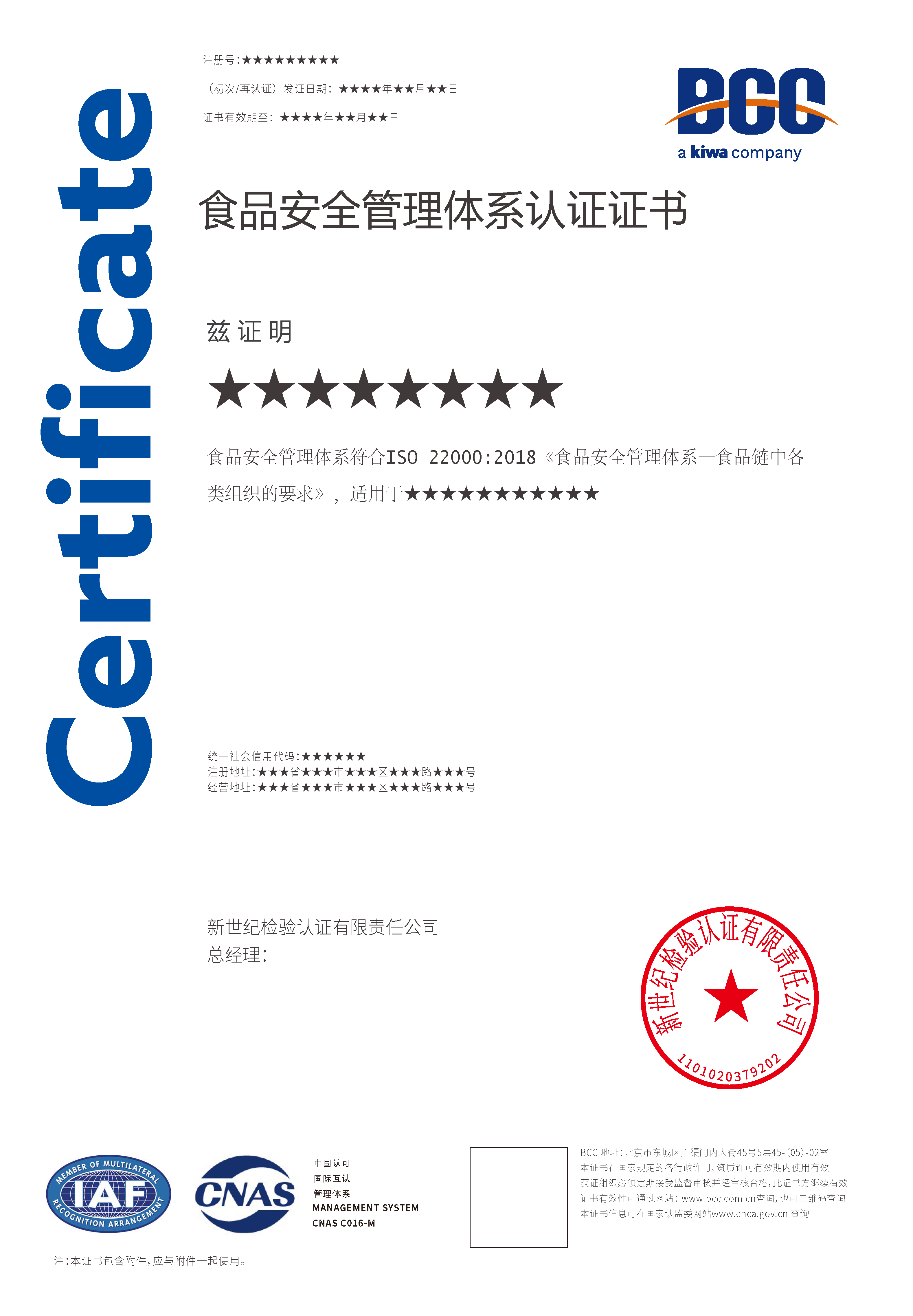 本頁涉及的認證服務(wù)中均有對應(yīng)的《認證實施規(guī)則》,BCC擁有其最終解釋權(quán)。任何組織及個人未經(jīng)BCC許可,不得以任何形式全部或部分使用(法律要求除外)認證相關(guān)信息。如需獲取相關(guān)實施規(guī)則請用以下方式聯(lián)系獲?。弘娫挘?10-58579316 郵箱:fwjs@kiwa.cn