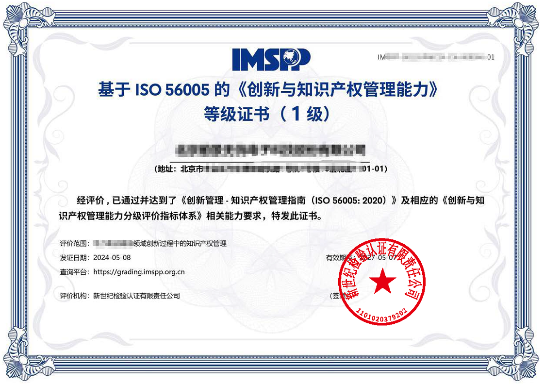 ISO 56005證書(shū)樣例