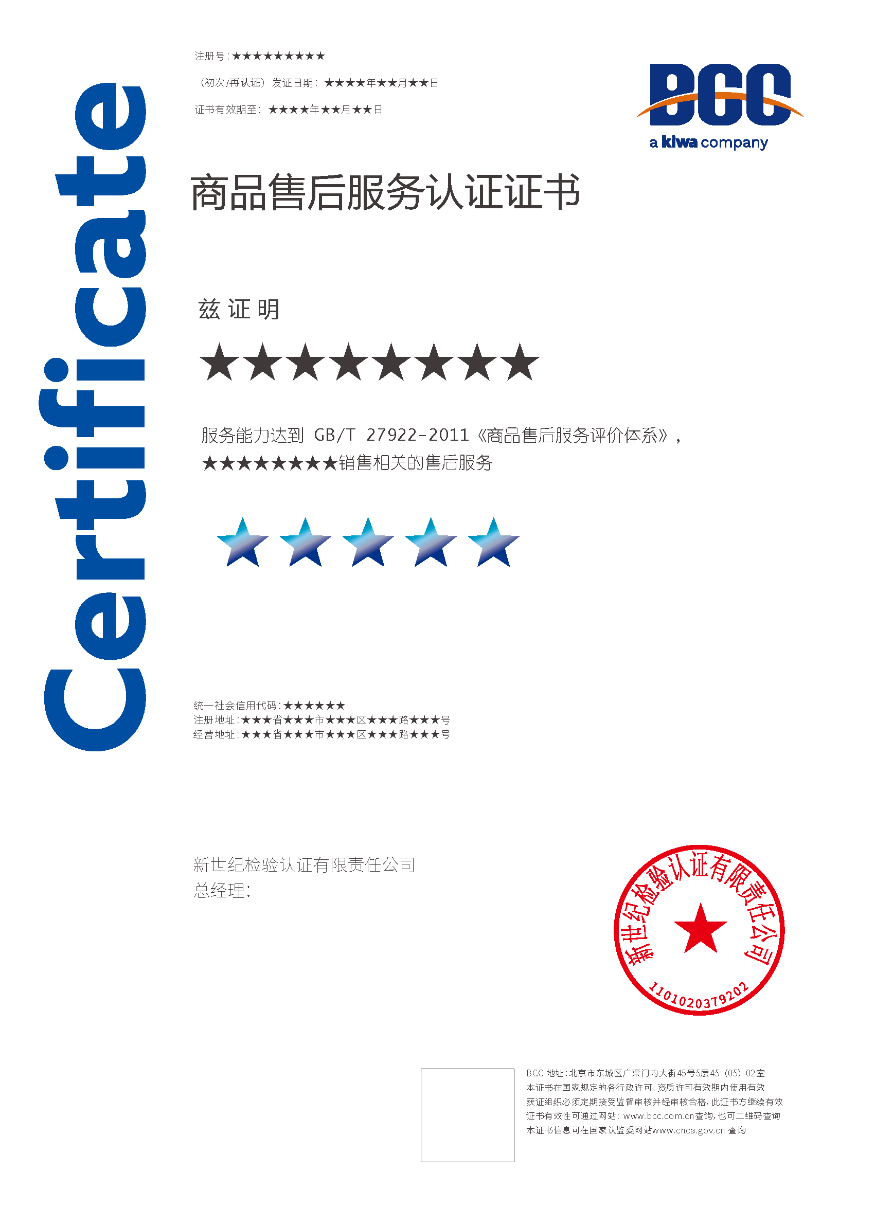 本頁涉及的認證服務(wù)中均有對應(yīng)的《認證實施規(guī)則》,BCC擁有其最終解釋權(quán)。任何組織及個人未經(jīng)BCC許可,不得以任何形式全部或部分使用(法律要求除外)認證相關(guān)信息。如需獲取相關(guān)實施規(guī)則請用以下方式聯(lián)系獲取:電話:010-58579316 郵箱:fwjs@kiwa.cn
