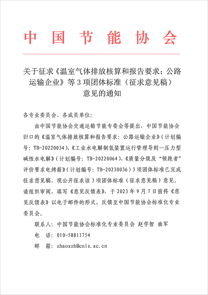 關(guān)于征求《溫室氣體排放核算和報告要求:公路運輸企業(yè)》等3項團體標準(征求意見稿)意見的通知