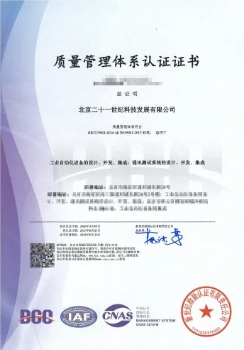 審核組通過現(xiàn)場審核一致認定,北京二十一世紀的運行過程、支持過程(包括資源、能力、成文信息)、管理過程(領導作用、策劃、目標、績效評價、改進)的控制情況均符合要求,提供的記錄能夠證實管理體系滿足適用要求和實現(xiàn)預期。
