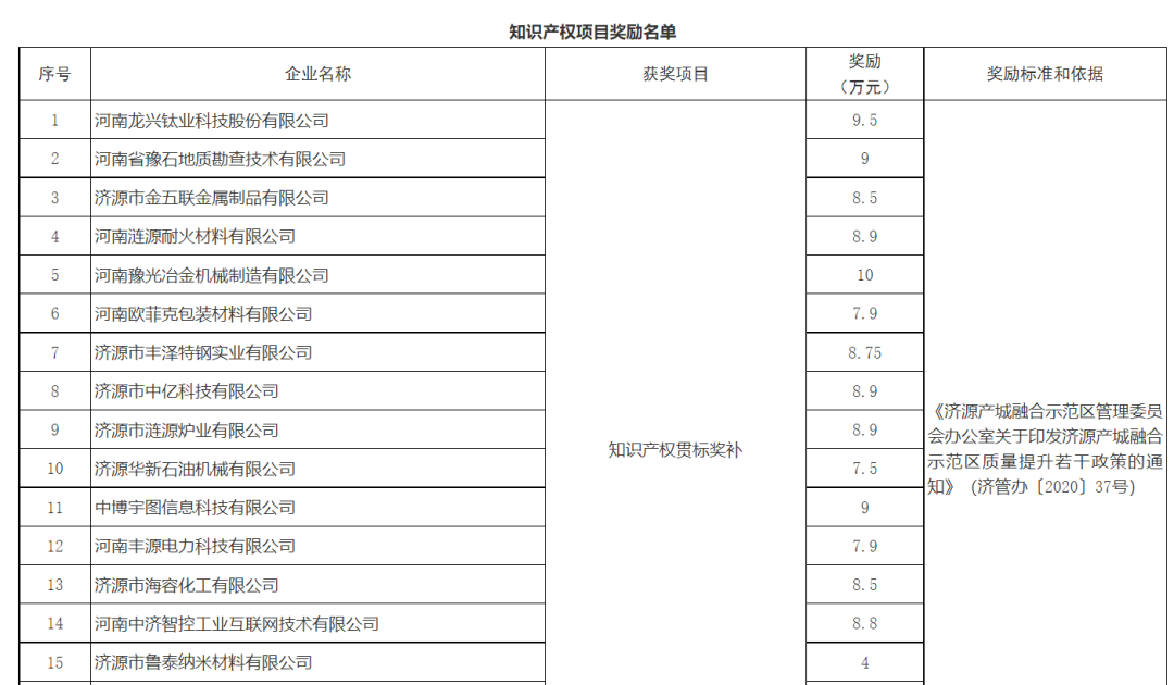 為進一步推進質(zhì)量強市建設,優(yōu)化營商環(huán)境,激勵各單位、企業(yè)和個人開展質(zhì)量提升工作,充分發(fā)揮財政資金對質(zhì)量發(fā)展的促進和導向作用,全面提升質(zhì)量水平,提高企業(yè)核心競爭力,加快培育競爭新優(yōu)勢,建設創(chuàng)新型高品質(zhì)現(xiàn)代化示范區(qū),按照《中共濟源市委濟源市人民政府關于開展質(zhì)量提升行動的實施意見》(濟發(fā)〔2018〕22號)和《濟源產(chǎn)城融合示范區(qū)管理委員會辦公室關于印發(fā)濟源產(chǎn)城融合示范區(qū)質(zhì)量提升若干政策的通知》(濟管辦〔2020〕37號)的規(guī)定,決定對取得2021年度質(zhì)量成果的單位、企業(yè)和個人予以通報獎勵補助。
