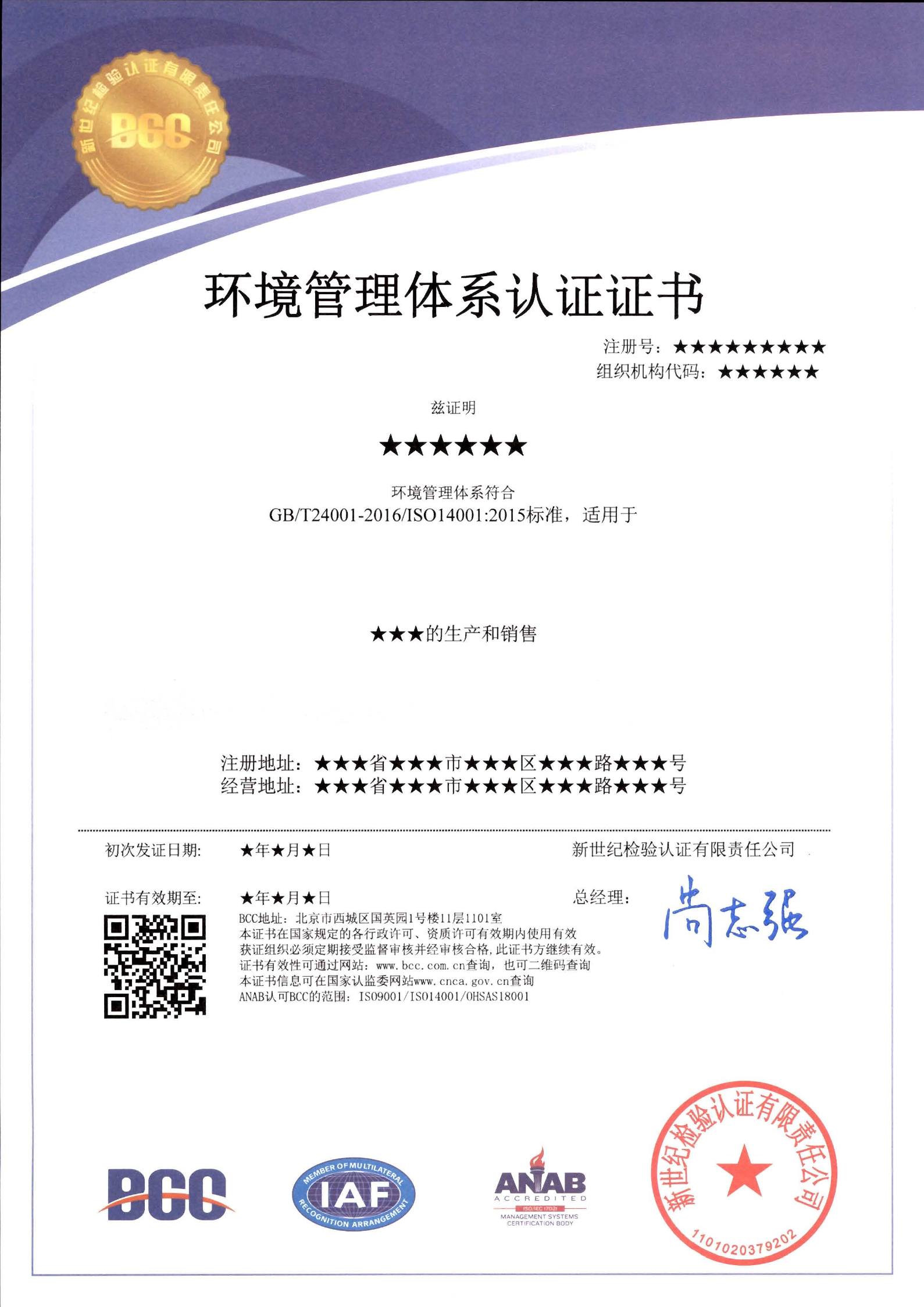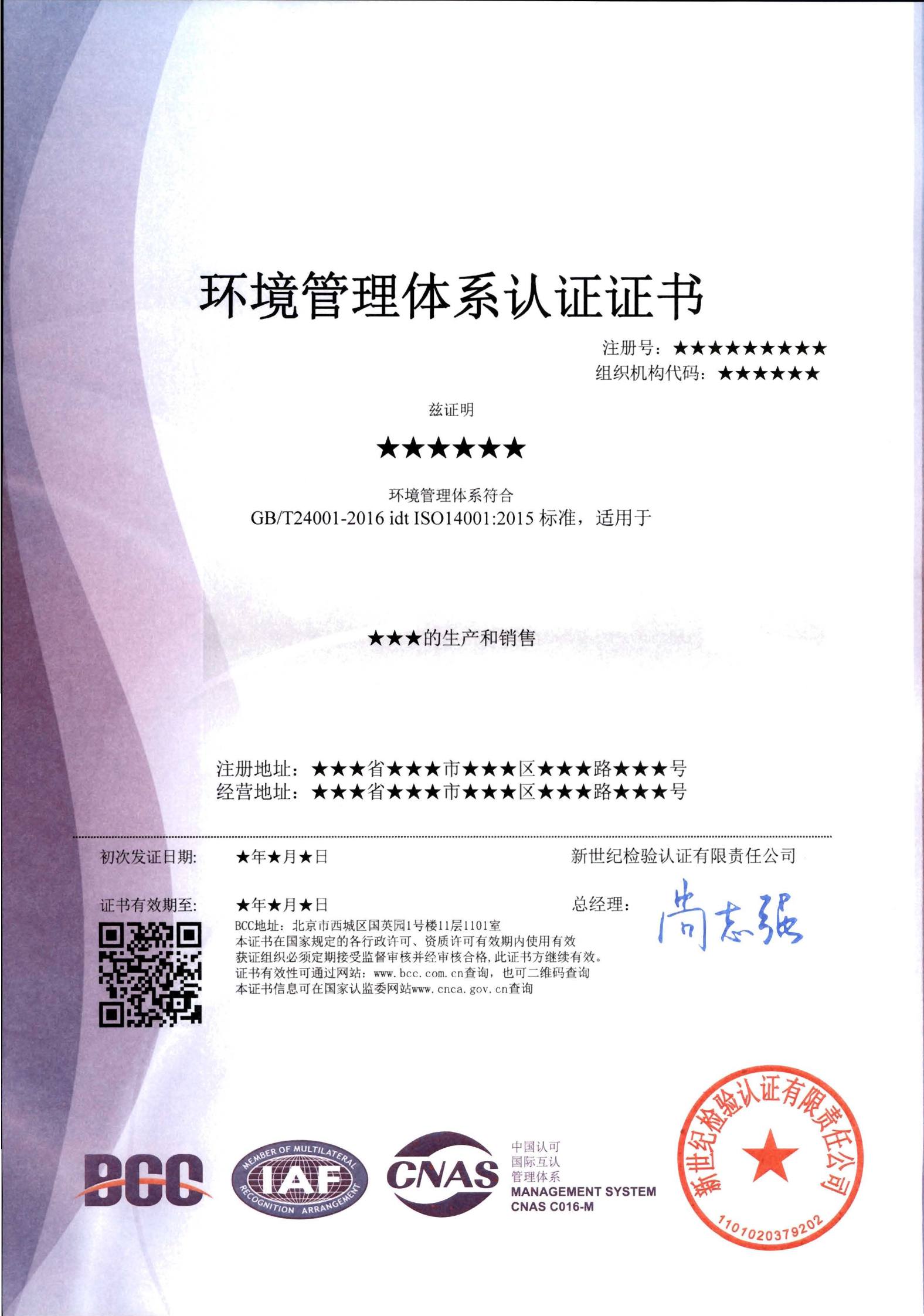 你好,環(huán)境管理體系認證書樣本每個認證機構都是不一樣的。但是證書上一定有認證的標準、標志、產品范圍等信息。