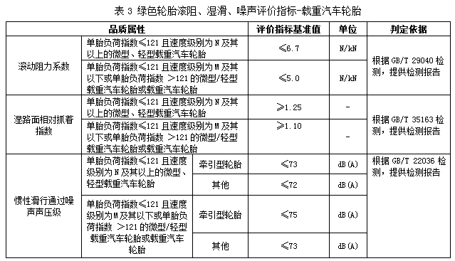 對于轎車輪胎和載重汽車輪胎,需同時(shí)滿足生產(chǎn)企業(yè)基本要求、產(chǎn)品基本要求,以及資源屬性、能源屬性、環(huán)境屬性和品質(zhì)屬性等指標(biāo)要求,才能夠被判定為綠色輪胎產(chǎn)品。